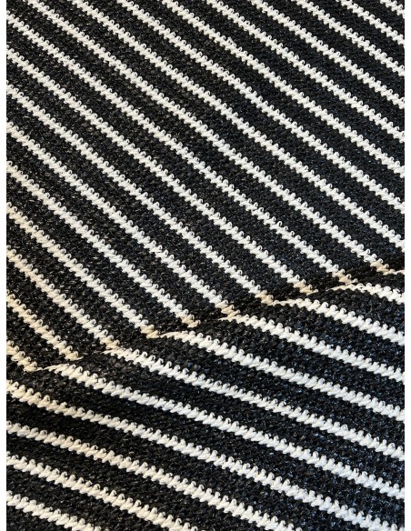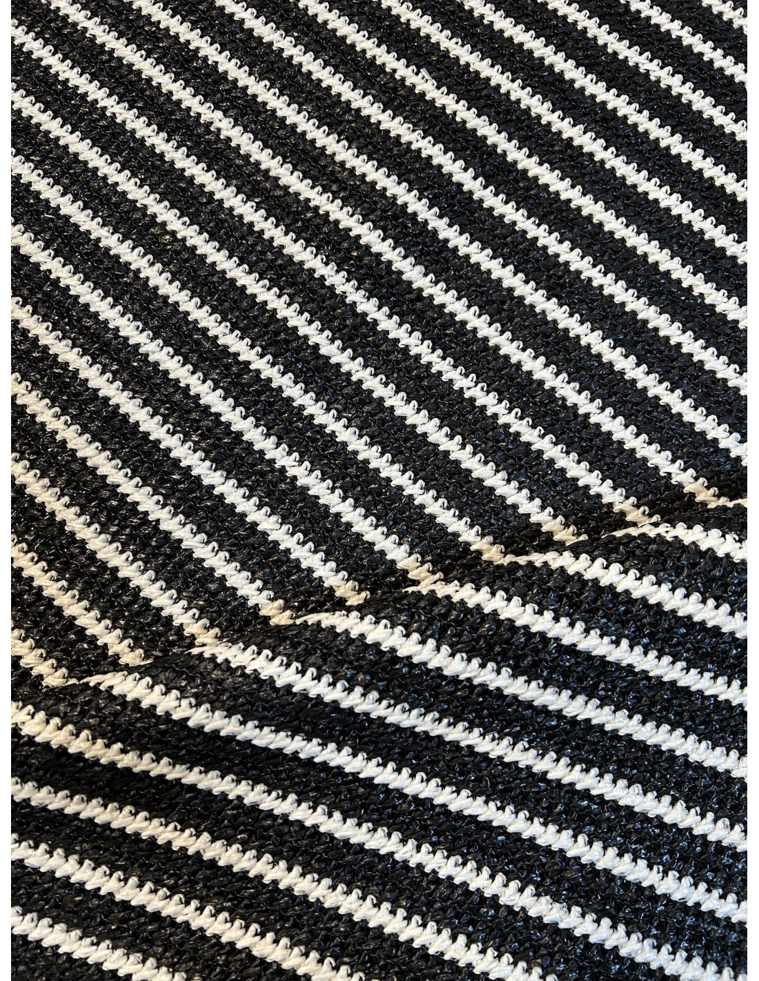SYNTHETIC STRAW FABRIC STRIPED BLACK-WHITE