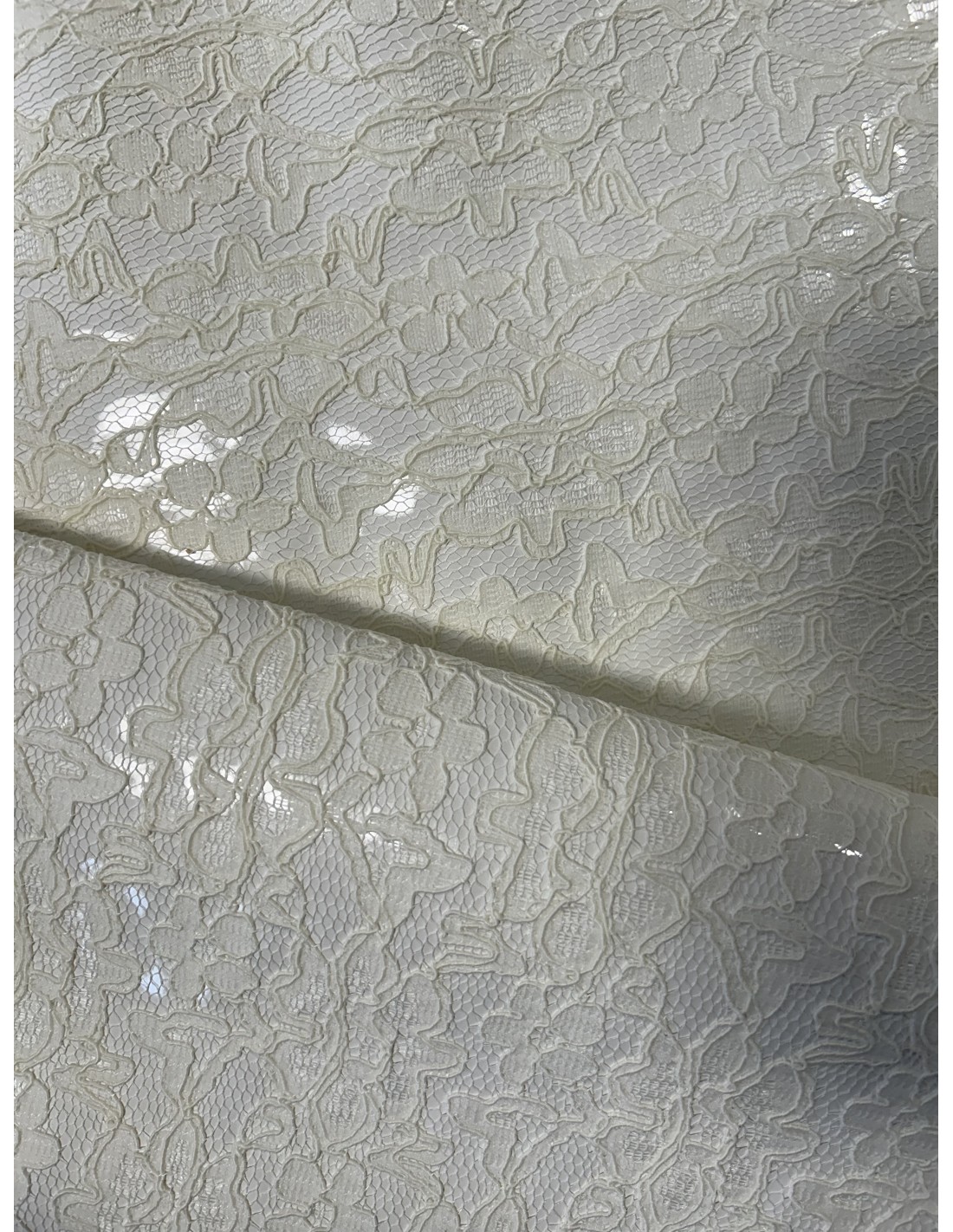 SHINY SYNTHETIC LEATHER WITH FLOWERS WHITE