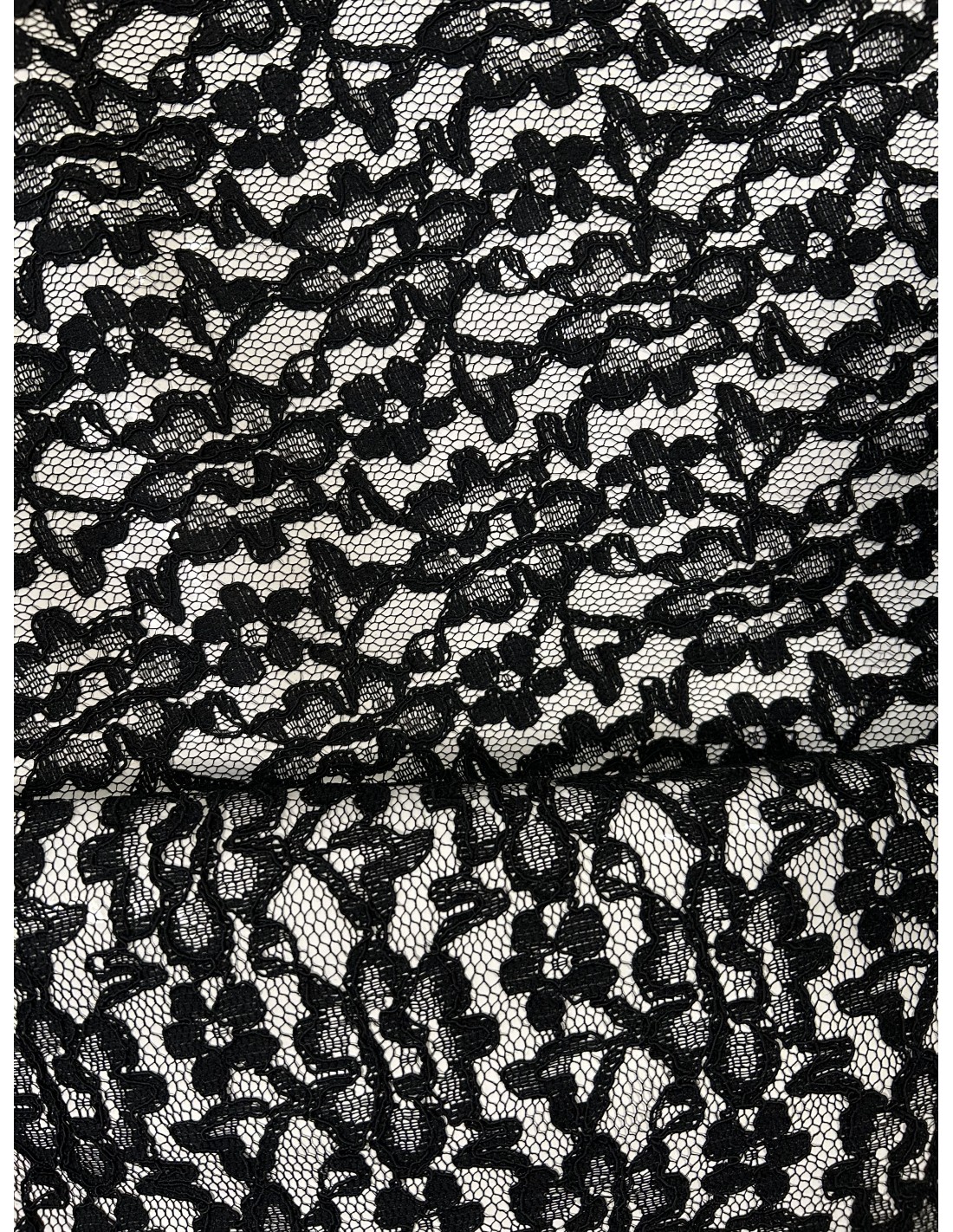 SHINY SYNTHETIC LEATHER WITH FLOWERS BLACK
